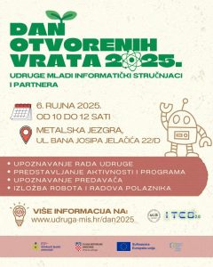 Mladi informatički stručnjaci (MIS) i partneri pozivaju Vas na Dan otvorenih vrata koji će se održati 6. rujna (subota) u Metalskoj jezgri u Čakovcu. Ovaj događaj predstavlja priliku da se upoznate s našim radom, aktivnostima i izvrsnim tečajevima koje planiramo za predstojeću školsku godinu.