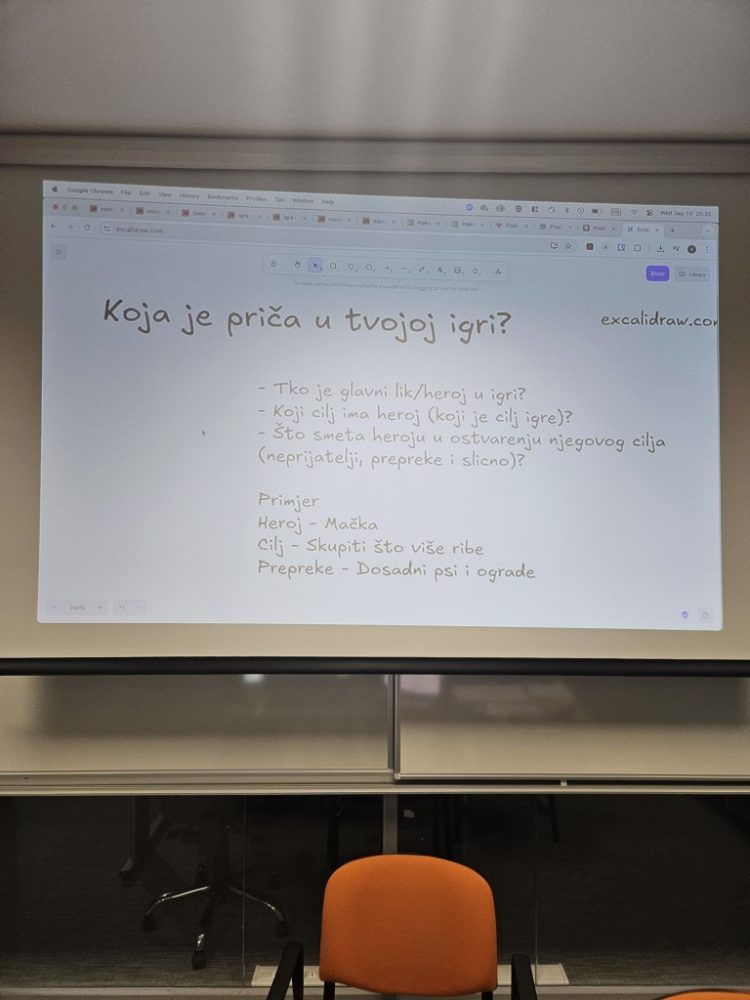 Radionica “Od ideje do igre – microStudio za video igre” djeci je pružila priliku da razviju programerske i kreativne vještine koristeći microStudio, besplatno internetsko okruženje za brzu i zabavnu izradu videoigara. Polaznici su prošli cijeli proces izrade igre, od pripreme ideje, dizajna likova i okruženja do programiranja logike, pri čemu su upoznali osnovne principe programiranja i logike kroz igru, razvili vještine microScripta unutar microStudija, potaknuli kreativnost i inovativnost te ojačali samopouzdanje u korištenju tehnologije i rješavanju problema.