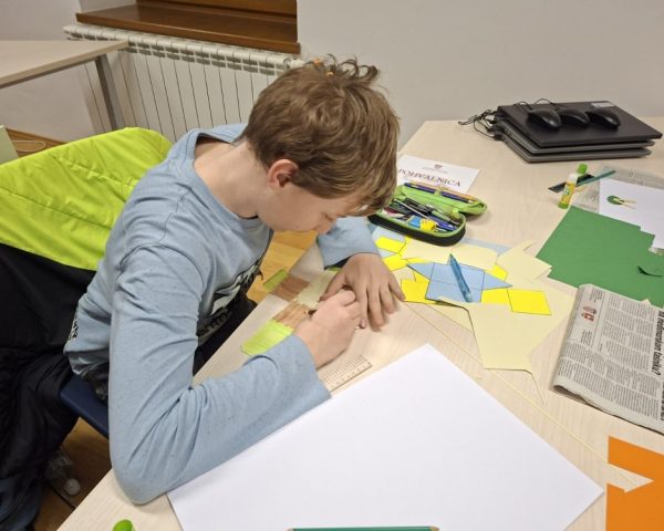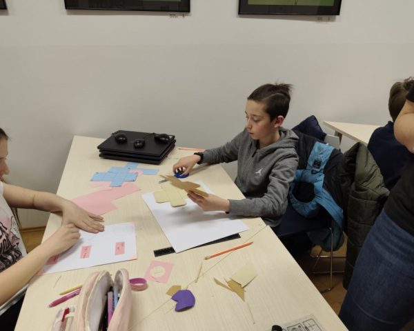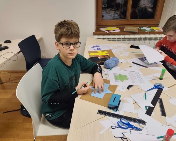 Najzahtjevniji, ali ujedno i najzanimljiviji projekt bio je izrada interaktivnih matematičkih plakata. Tijekom četiri susreta učenici su najprije samostalno odabrali matematičke teme koje će prikazati na kreativan način, poput vrsta kutova, geometrijskih tijela, trokuta, ravnih crta ili dijelova kružnice. U prvoj fazi osmislili su i likovno uredili svoje plakate, vodeći računa o jasnoći i preglednosti prikaza te sadržajnoj točnosti. U drugoj fazi uslijedilo je „oživljavanje“ plakata dodavanjem jednostavnih strujnih krugova. Učenici su uz pomoć LED lampica, prekidača i baterija povezivali elemente u funkcionalnu cjelinu – pritiskom na prekidač zatvara se strujni krug i osvjetljava odabrani element na plakatu. Na taj su način njihovi radovi postali interaktivni, dinamični i dodatno zanimljivi za prezentaciju i učenje. U toj drugoj fazi u gostima su nam bili i zdušno pomagali i naši edukatori Anita Sečan i Zoran Kadežabek, te polaznici radionice „Elektronika i Internet stvari“ (čiji je voditelj Zoran Kadežabek). Koristim priliku da im se u osobno ime i ime svih učenika od srca zahvalim na suradnji i pomoći u realizaciji ovog dijela – osmjeh na licima učenika kada su nosili kući svoje interaktivne plakate je neprocjenjivo iskustvo!